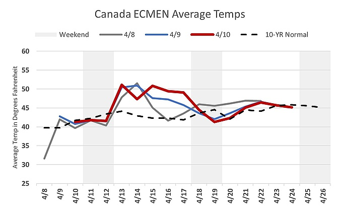It was a fairly tame Friday for Canadian gas, with warmer Ontario and Quebec weather softening the demand side and NEXUS maintenance still limiting some Ontario-area flows. NYMEX fell $0.02 USD/MMBtu and Dawn slipped $0.01 CAD/GJ, while WTI added $0.89 to $98.76 USD/bbl. Broader energy sentiment, though, remained tied to the U.S.-Iran conflict and the ongoing disruption through the Strait of Hormuz. Even with ceasefire talk in the background, crude flows through Hormuz have not fully normalized and competition for available barrels remains elevated. Rystad Energy’s Jai Singh said the market still appears to be underestimating the scale of the supply disruption, and with prices expected to stay firmer for longer, some producers are beginning to consider adding rigs. (JM)