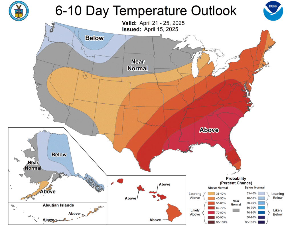 Maintenance season continues. Production is up since last week, but still isn’t back to full capacity. LNG feed gas demand, although is pushing another monthly record high in April so far, had a drop in daily demand, with export plants undergoing their own seasonal maintenance too. With the rest of April (except a few days this week) expected to have mostly above average temperatures, expect the residential/commercial heating demand to wind down and for Utilities to start buying.