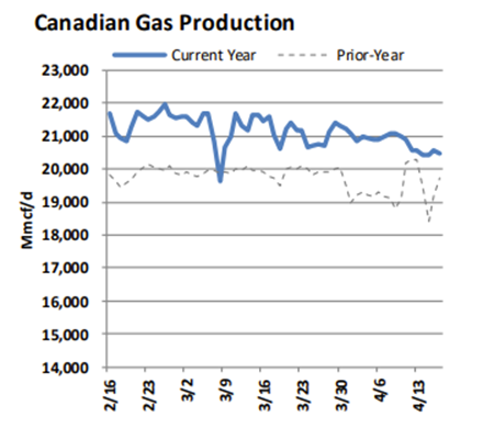 There was a bit more going on in energy markets today, although crude was where the real move showed up. WTI fell $11.54 to $83.15 USD/BBL after Iran said the Strait of Hormuz would remain open to commercial shipping for the duration of the ceasefire, which took a large chunk of the supply disruption premium back out of oil. Gas was relatively quiet by comparison, with NYMEX up $0.03 USD/MMBtu and Dawn up $0.02 CAD/GJ. On the Ontario side, the tone still looks fairly soft, with Dawn and Tecumseh storage unchanged over the past two weeks at 67 PJ and 27 PJ, respectively, which continues to fit with a looser shoulder-season balance. Happy Friday and have a nice weekend! (JM)