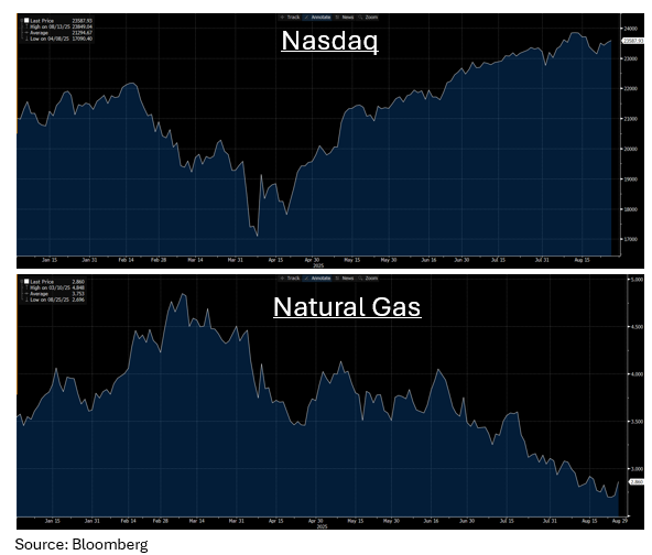 Natural Gas markets were up considerably for the last day of trading the future month of September 25. The market was range bound all day between $2.68 to $2.90 USD/Mmbtu settling at $2.87. The fundamentals are relatively the same moving into the fall weather as temperatures start to cool as we round out the end of summer. One industry pundit, Eric Nuttall, noted on Twitter earlier today, “You can’t be bullish the first (Nasdaq) without being bullish the second…natural gas is the fuel of choice to satisfy the significant increase in power demand scaling in real-time: affordable, available, and reliable.” Take care. (RS)
