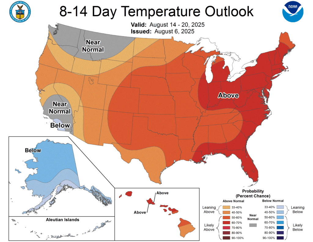 Not much new on the weather front, heat is still expected in mid August, including for those in the Northeastern region of the US. Some storm activity in the Atlantic to keep an eye on, but nothing so far that will reach landfall in the US as a cyclone.