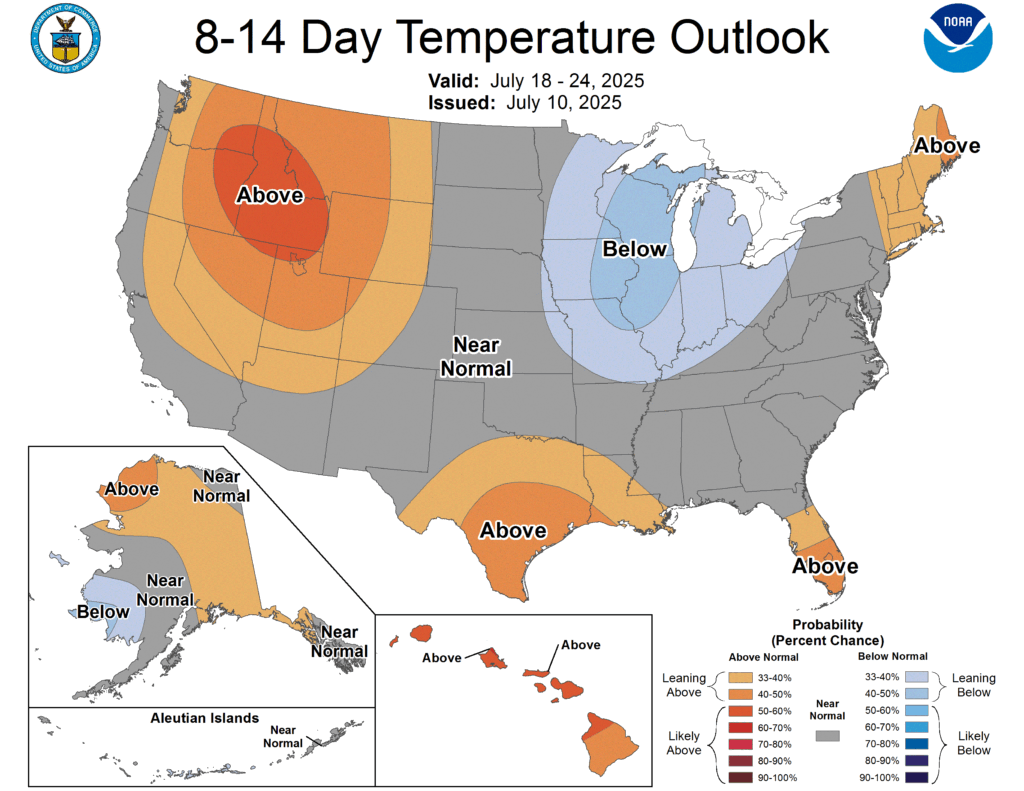 Not much to report this Friday. NYMEX is basically unchanged since yesterday this afternoon, only up or down a fraction of a cent. Although it’s looking warm in Ontario this weekend and next week, NOAA’s Temperature Outlook suggests that it may actually drop to below normal in some areas, if not about normal for most Americans.