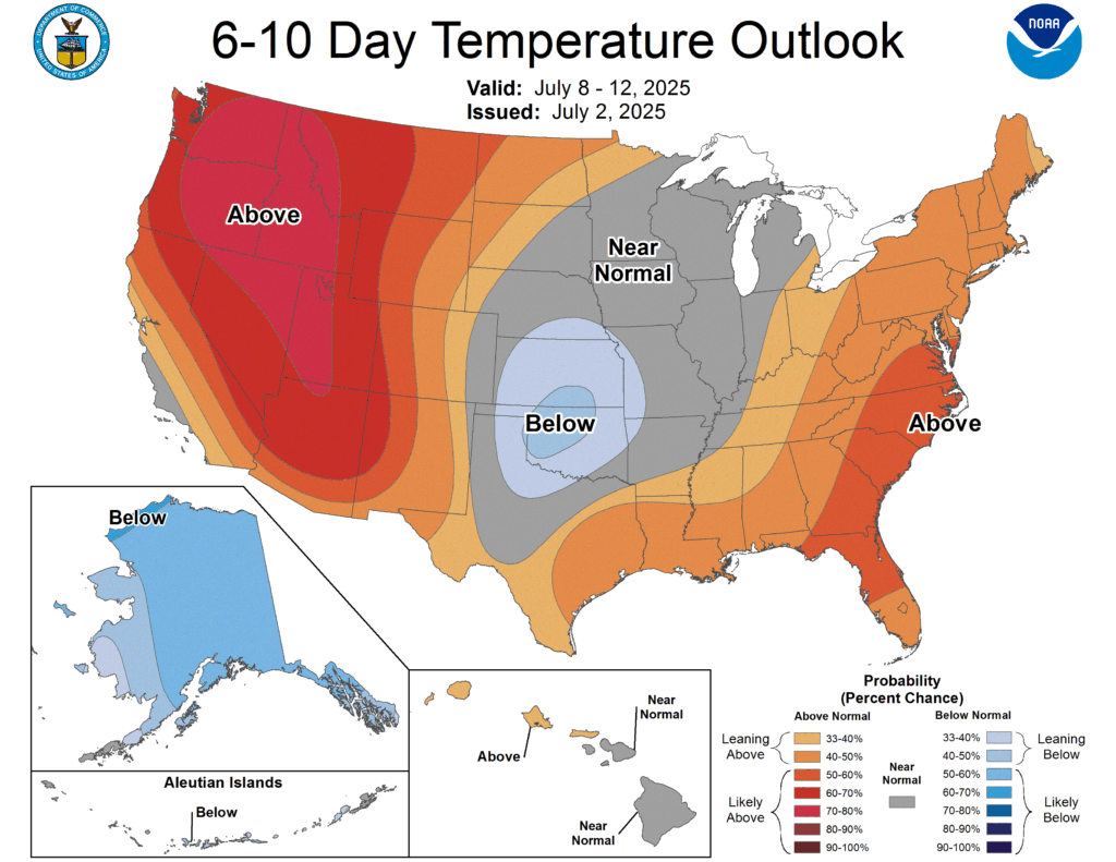 Looking ahead, it could be quite warm in mid-July, especially out West, but in the East too. Ontario looks to be on the cusp, but NYMEX could rally further with an increase in cooling demand.