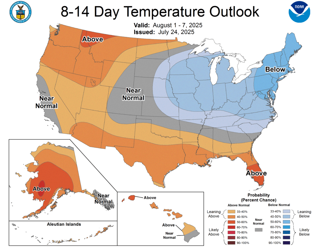 The first week of August could be cooler than normal for the northeastern US, hopefully offering a break to those living through this heat wave. Toronto is still under a heat warning, and Dawn has switched to withdrawals (though very tiny).