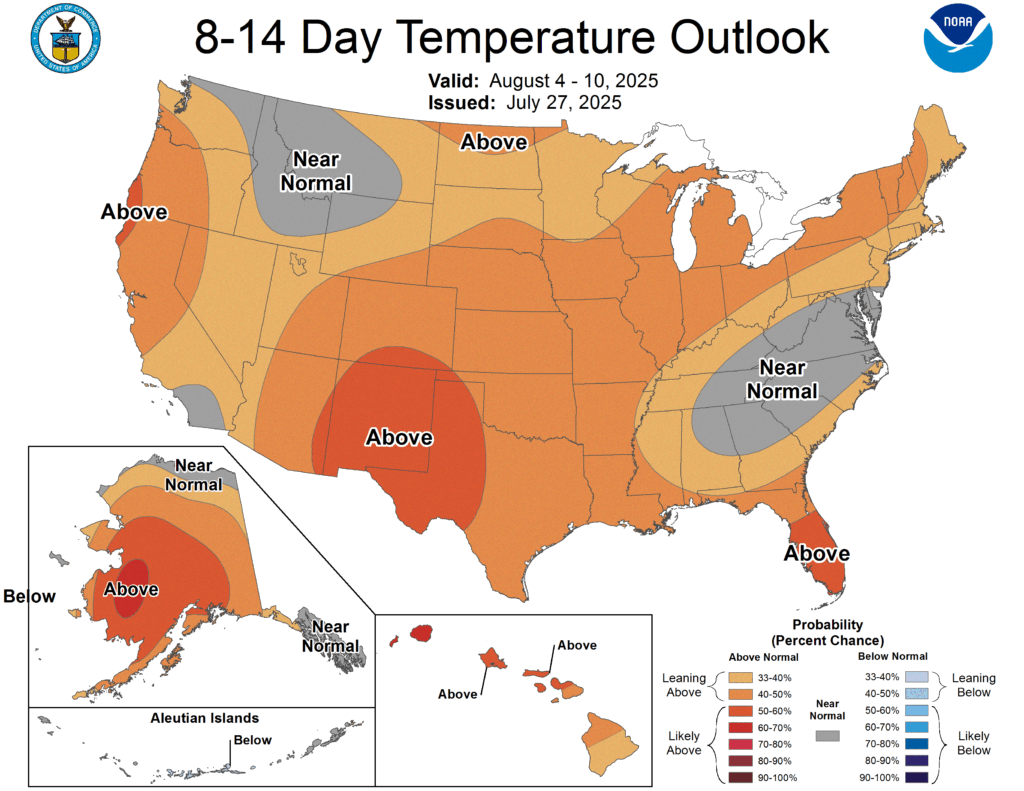 Although there is a heatwave currently hitting the Northeastern US, weather has overall calmed down quite a bit since the beginning of the month and temperatures in the rest of the states are expected to remain near-normal going forward.
