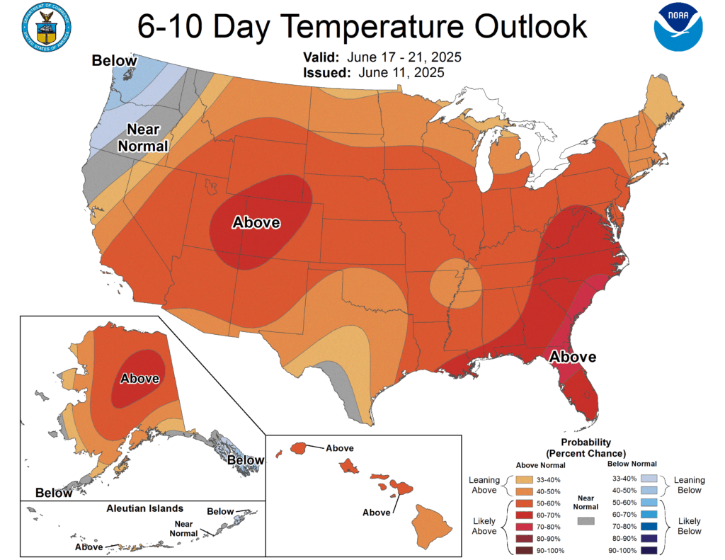 Today marks the third straight day of decline in the NYMEX, the July front month contract settled at $3.50 US/mm, down two cents since yesterday’s settle, although it did push lower throughout the day. Again, looks like the NYMEX trading is somewhat range-bound until something shakes it up, most likely when demand increases. Two possibilities are when major LNG plants wrap up their construction and start flowing at record highs again, or when some heat comes and cooling demand picks up. Given how the current forecast looks, the latter could happen before too long.